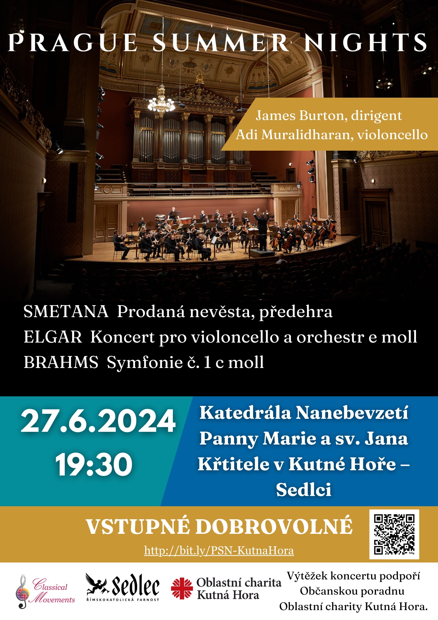 V rámci prestižního festivalu mladých umělců zazní v sedlecké katedrále Elgarův Koncert pro violoncello a orchestr e moll a Dvořákova Symfonie č. 8 pod vedením Jamese Burtona dirigenta bostonského symfonického orchestru. Výtěžek z dobrovolného vstupného bude věnován Oblastní charitě Kutná Hora.
